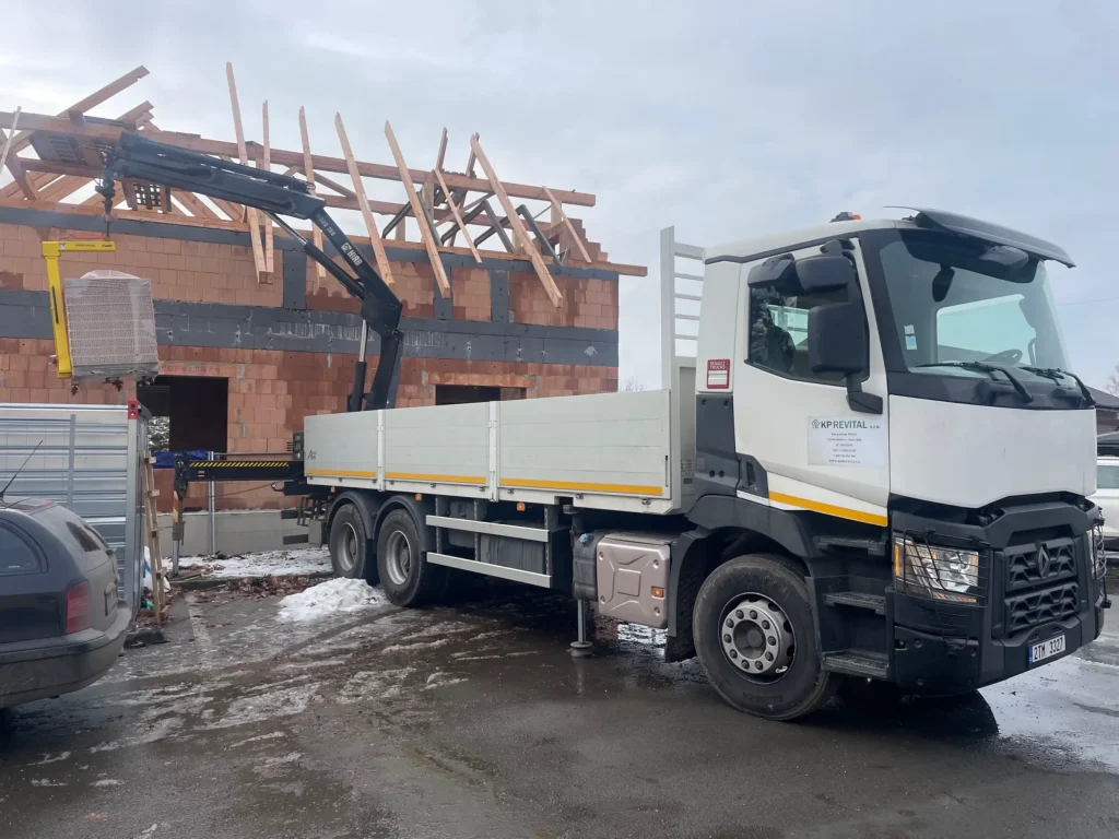 Hydraulická ruka umožní naložení a složení bez potřeby další techniky – šetří čas i peníze. Materiál složíme na dvůr, na chodník, k domu, za plot, na střechu (dle dosahu ruky) – přesně tam, kde ho potřebujete.